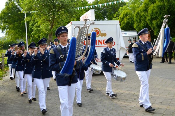 Traditionell beginnt das Schützenfest der Grinkenschmidter schon am Pfingstsamstag mit dem Antreten der Schützenbrüder am Festplatz um im Anschluss die heilige Messe an der Madonna der Landstraße zu feiern...